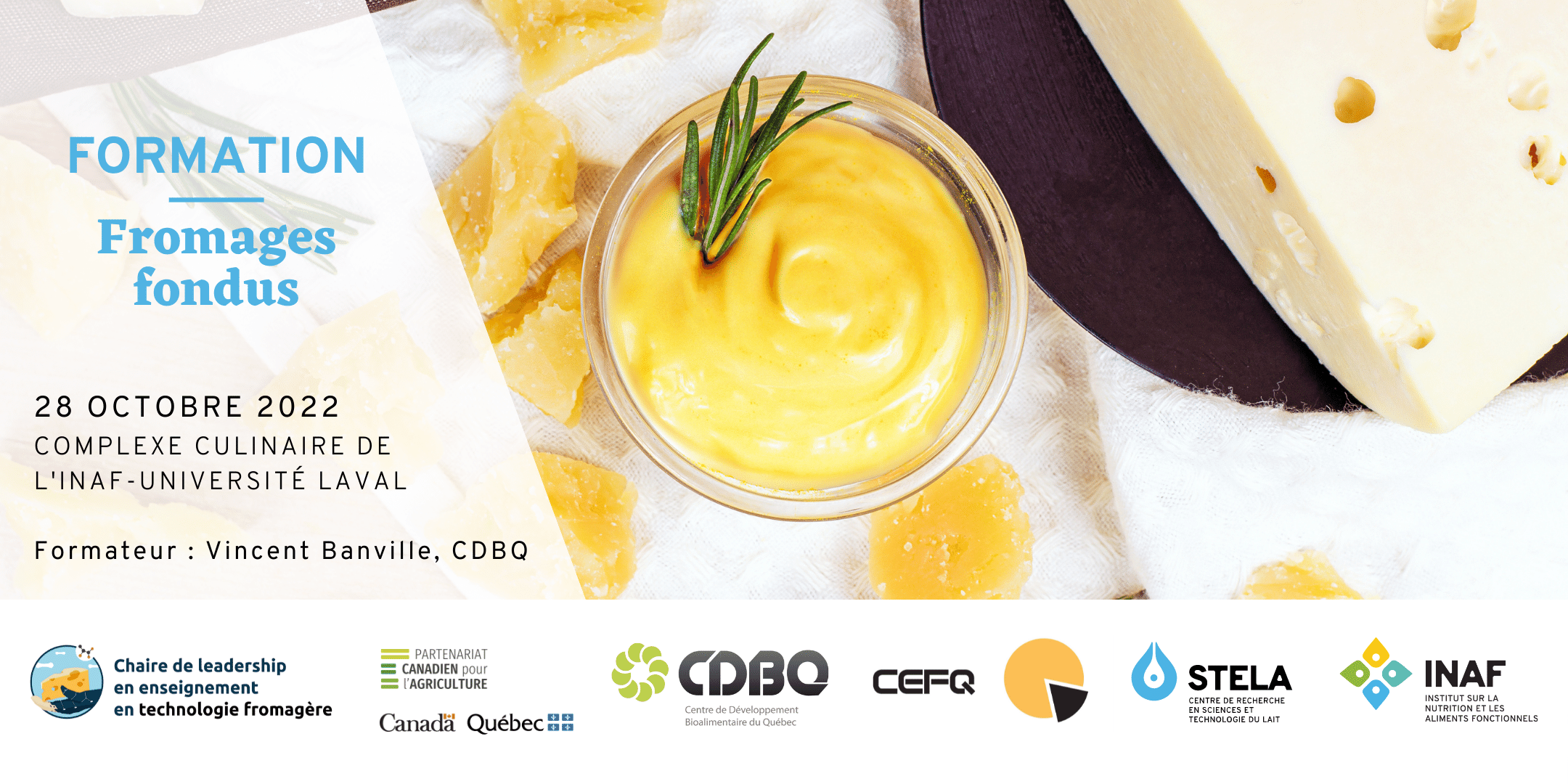 Une nouvelle formation d’une journée sur la fabrication des fromages fondus aura lieu au Complexe culinaire de l'INAF-Université Laval le 28 octobre 2022.